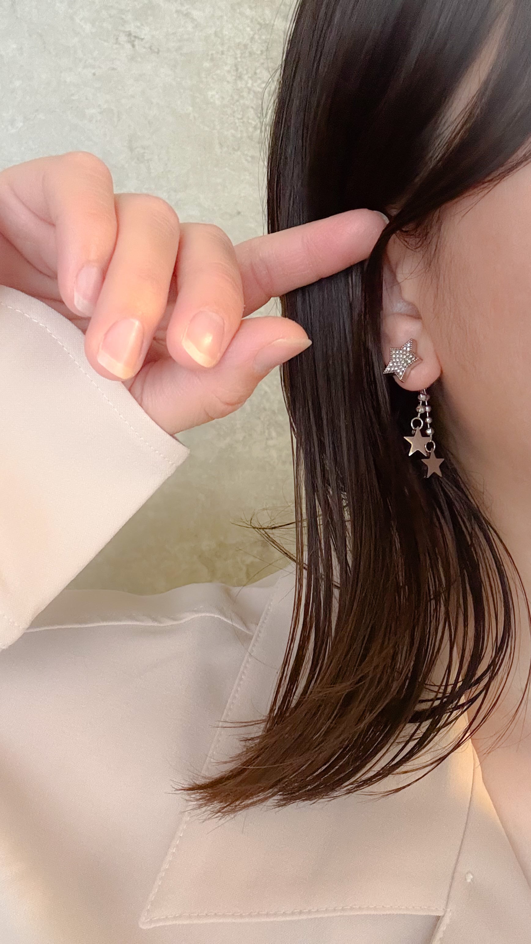 耳の後ろから星がチラチラ揺れるチェーン付きのタイプ