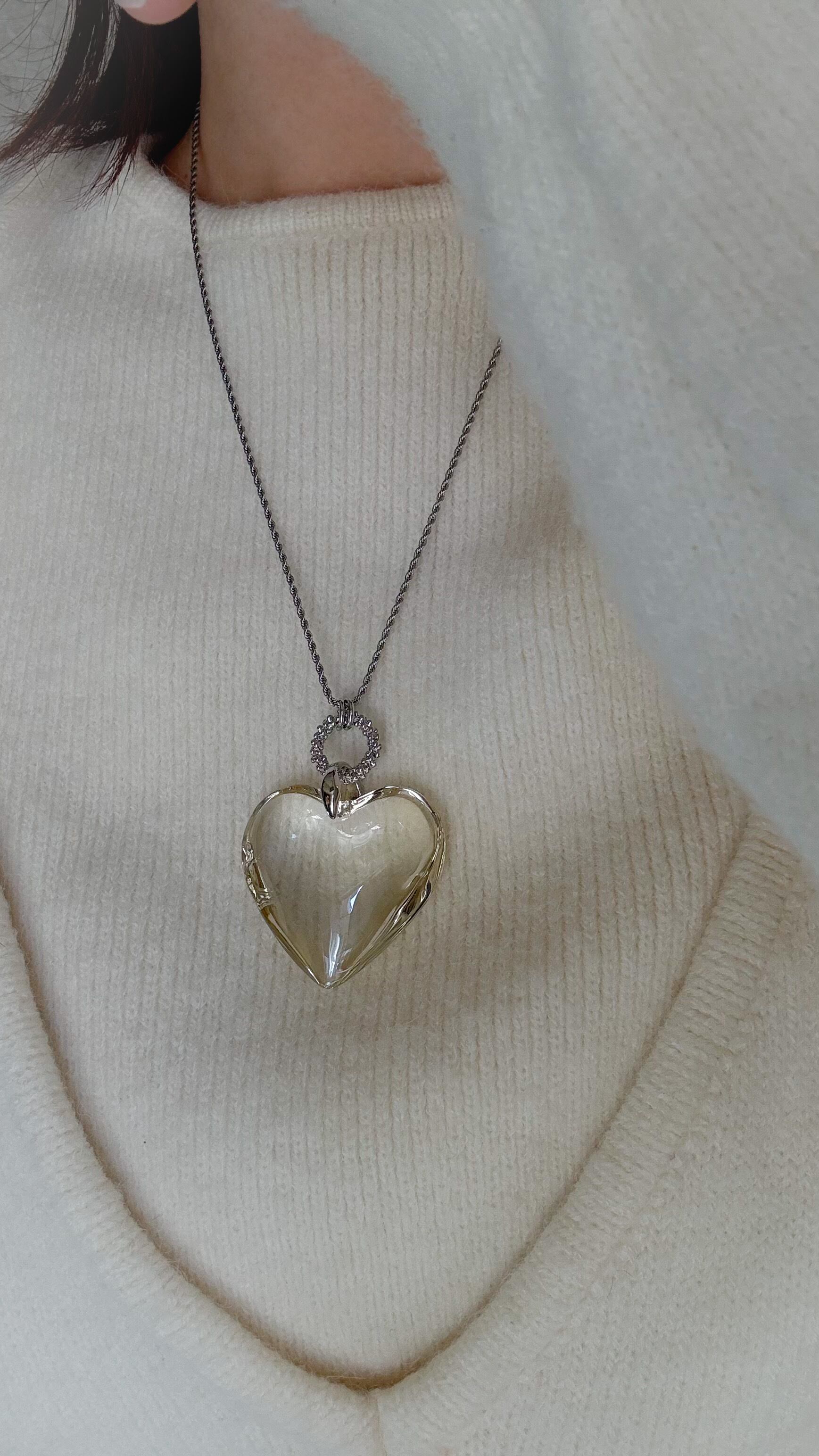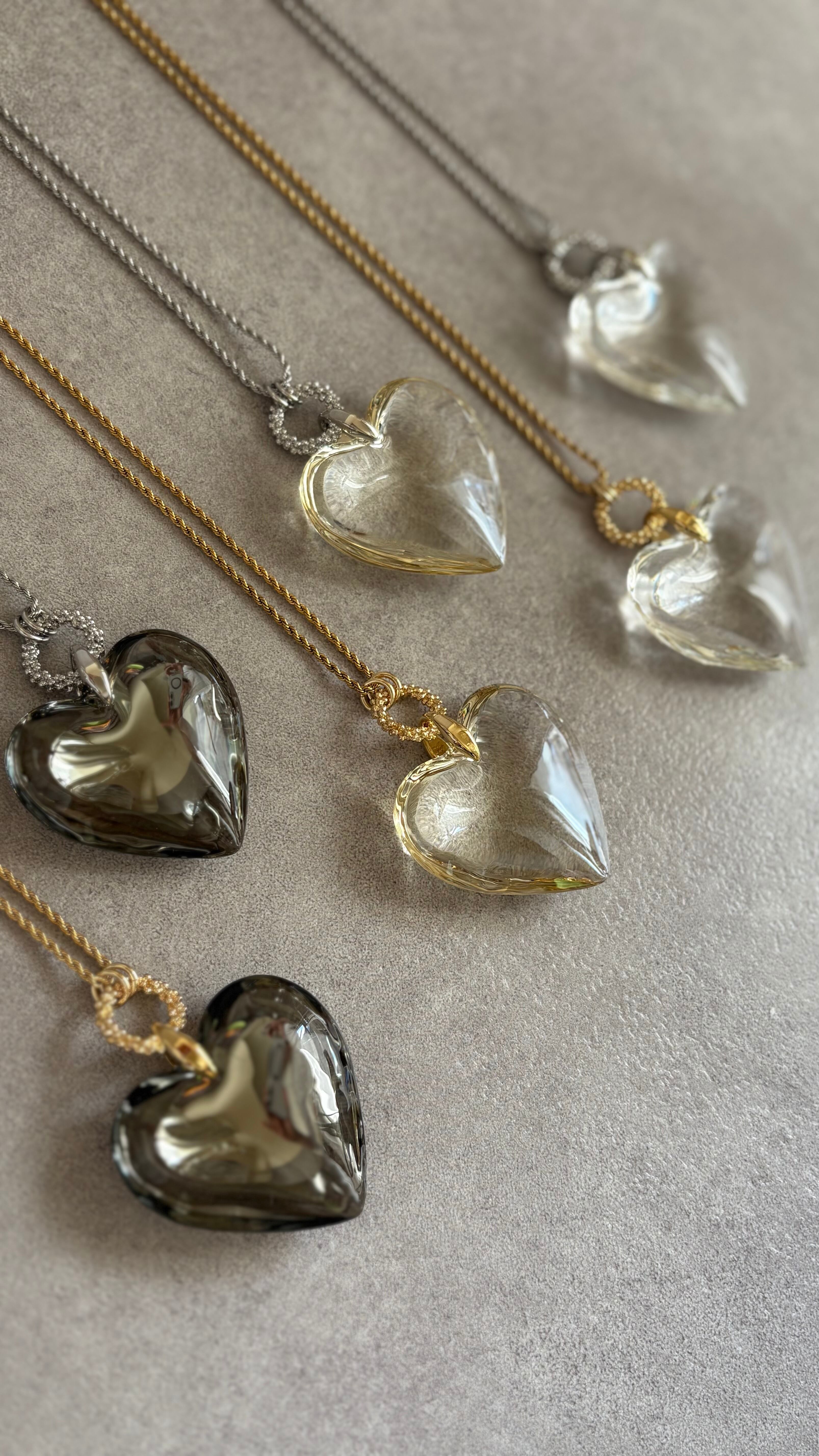 ガラス製の大きなハートが目を引く魅力的なデザイン