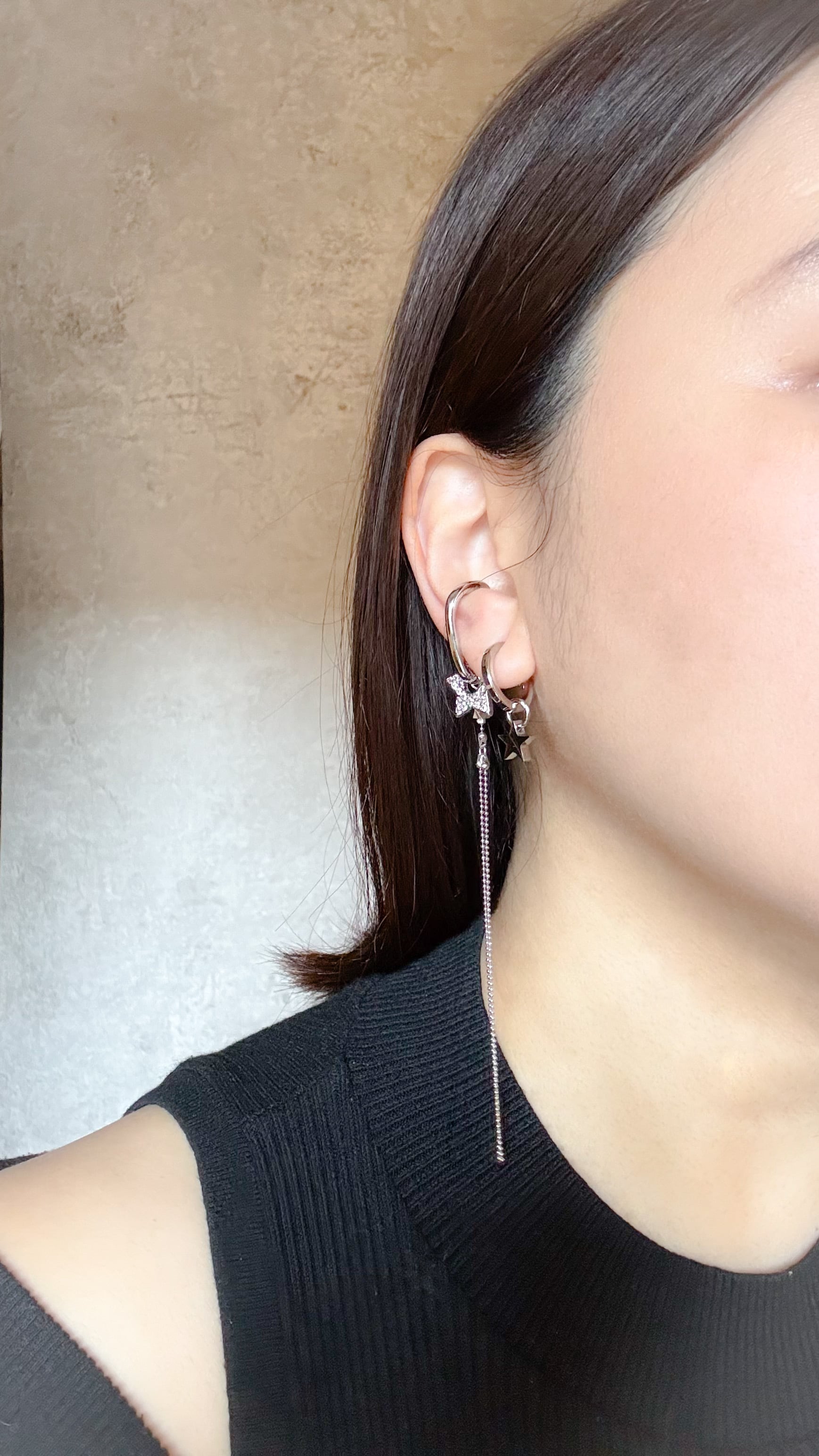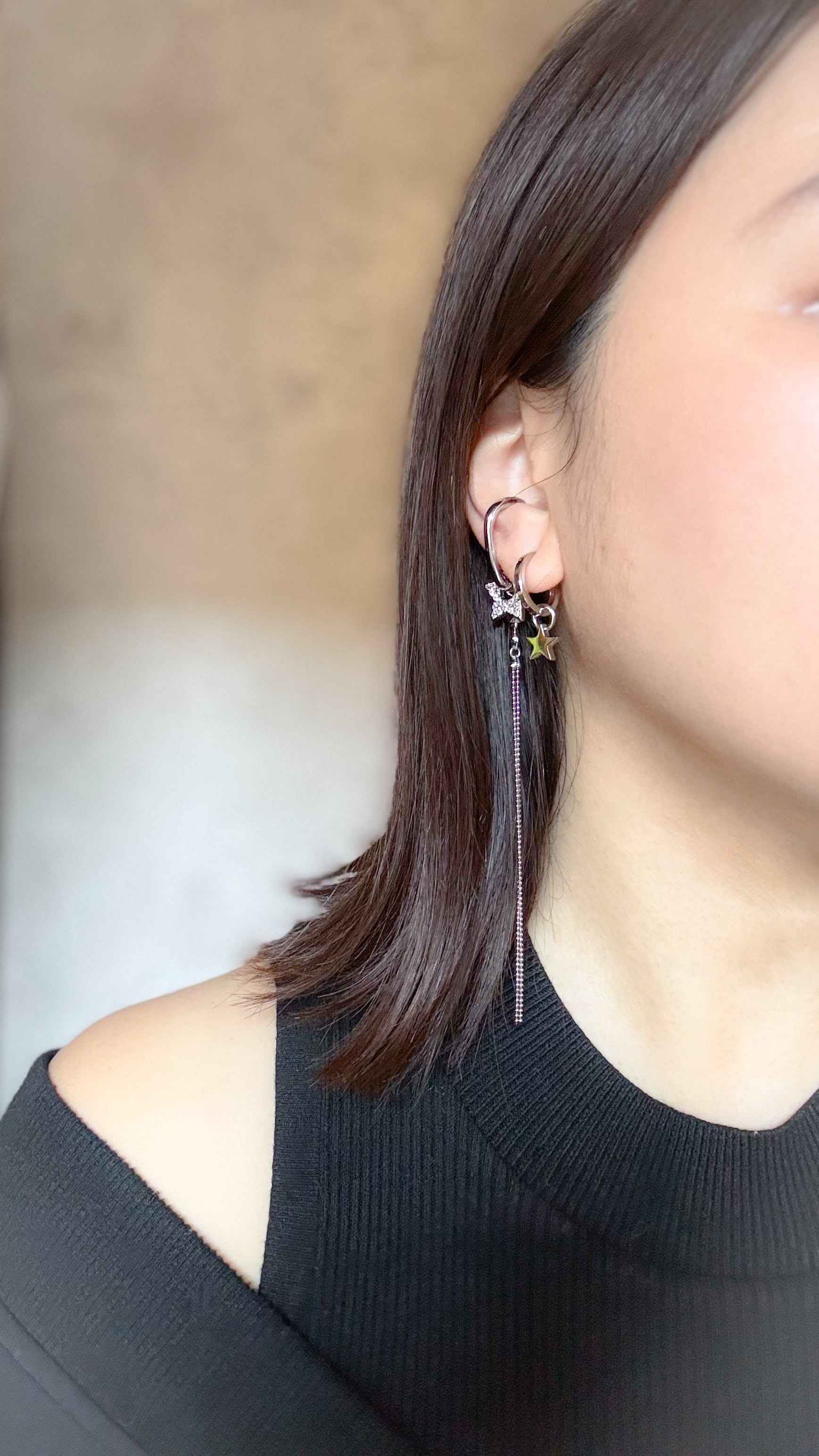 それとは逆にイヤーカフはキラキラの星のビジューチャームをお付けして華やかさをプラスしました✨