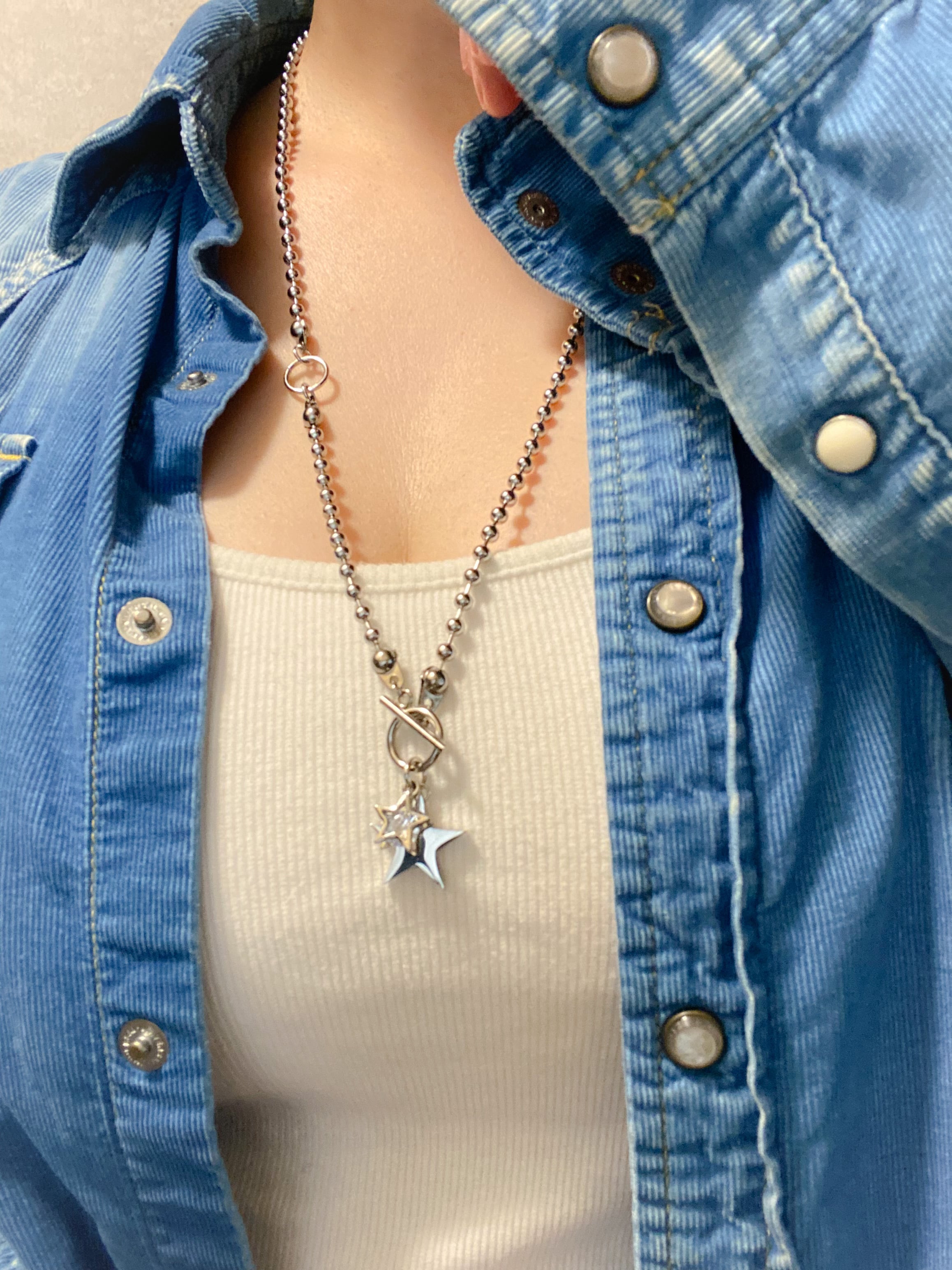 ボールチェーンのサイズは4mmタイプの物を使用しておりますので、ボールチェーンですがカジュアルになりすぎずお使いいただけるネックレスとなっております。